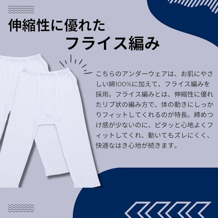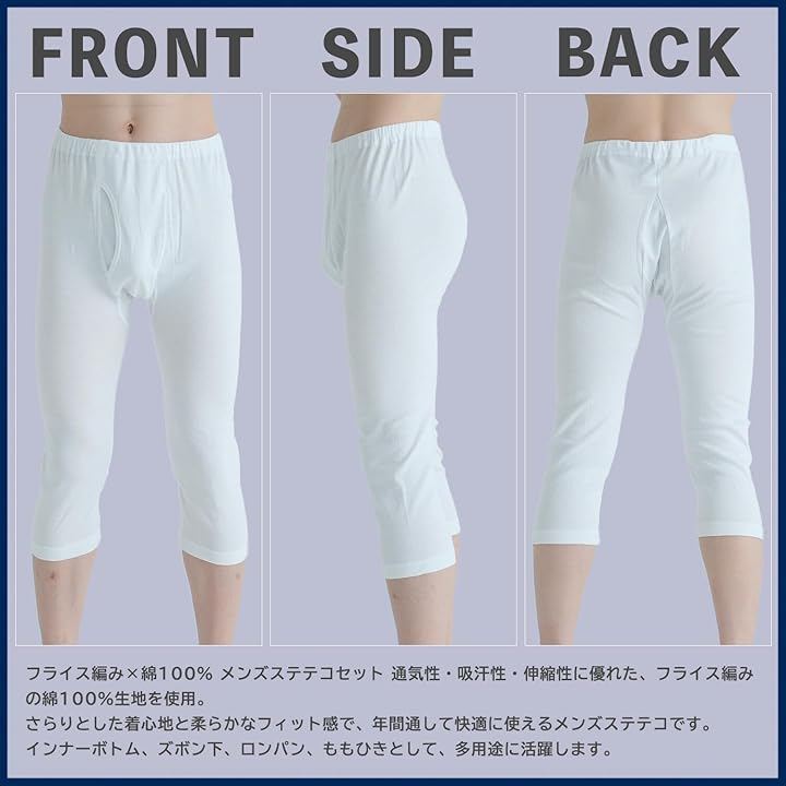 「毎日快適」フライス編みx綿100% メンズステテコセット 通気性・吸汗性・伸縮性に優れた、フライス編みの綿100%生地を使用。