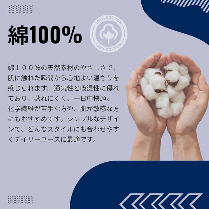 「綿100%・フライス編み素材」 通気性・吸汗性に優れた綿100%生地を使用。