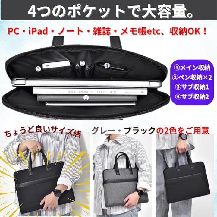 内側にA4サイズの書類、14インチのPCとタブレットを同時に収納可能。手帳、ノートなどの小物を整理しやすく取り出しやすくになっています。