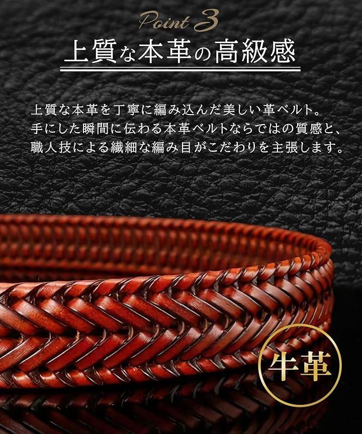 「上質な本革の高級感とこだわりのデザイン」上質な本革を丁寧に編み込んだ美しい革ベルト。