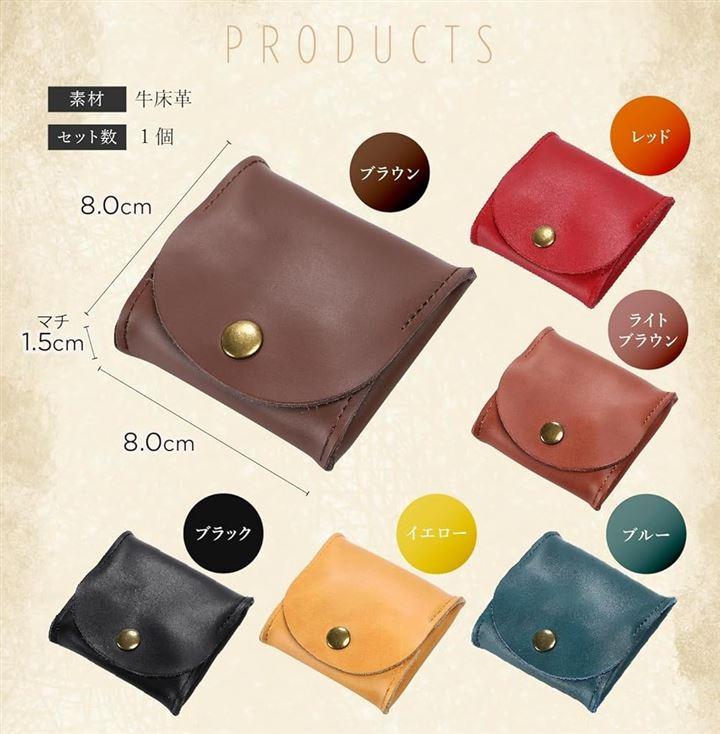 「商品仕様」素材:牛革、サイズ:約8x8x1.5cm、セット内容:本体+専用化粧箱、カラー:ブラック/ブラウン/ブルー/イエロー/レッド/ライトブラウン