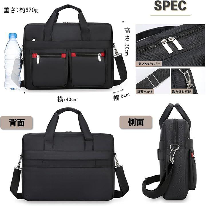 1. 大容量設計で業務用品をまとめて収納 A4書類やファイル、15インチクラスのノートパソコンが収まる収納力を備えたビジネスバッグです。
