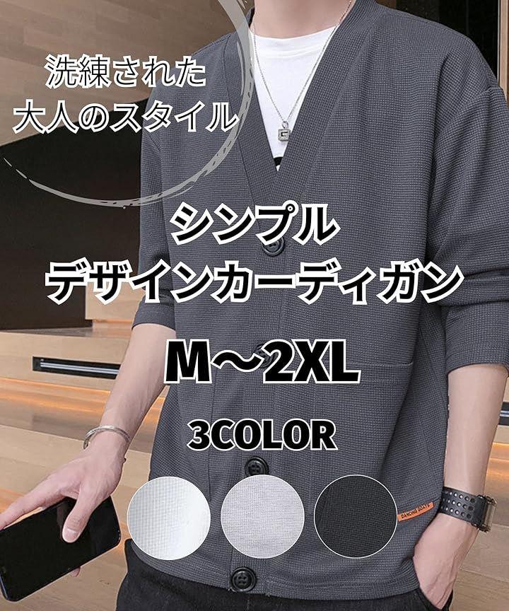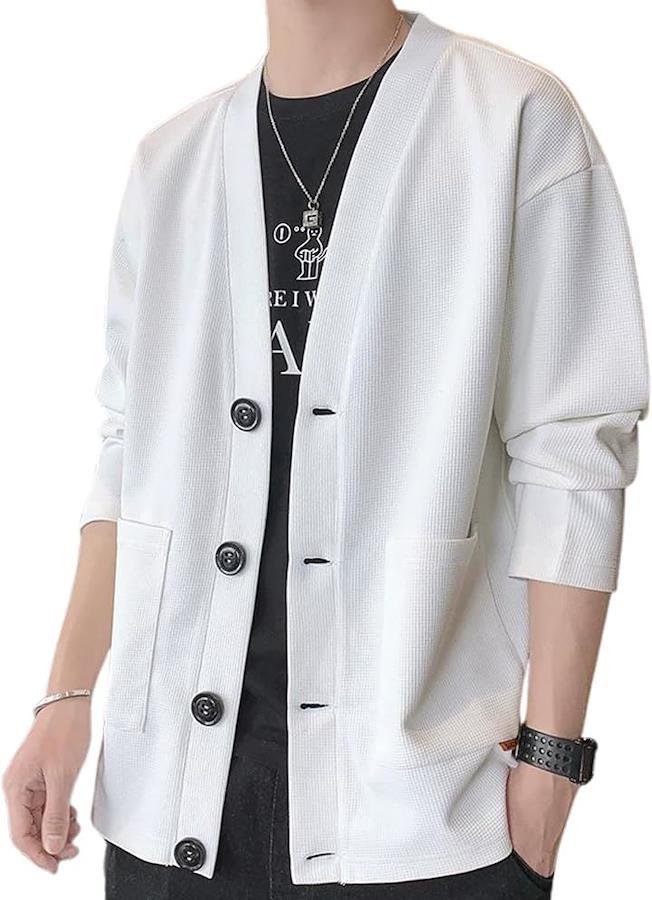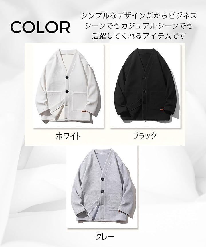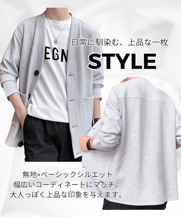本品は、凹凸のあるワッフル調生地を採用したメンズ前開きカーディガン。