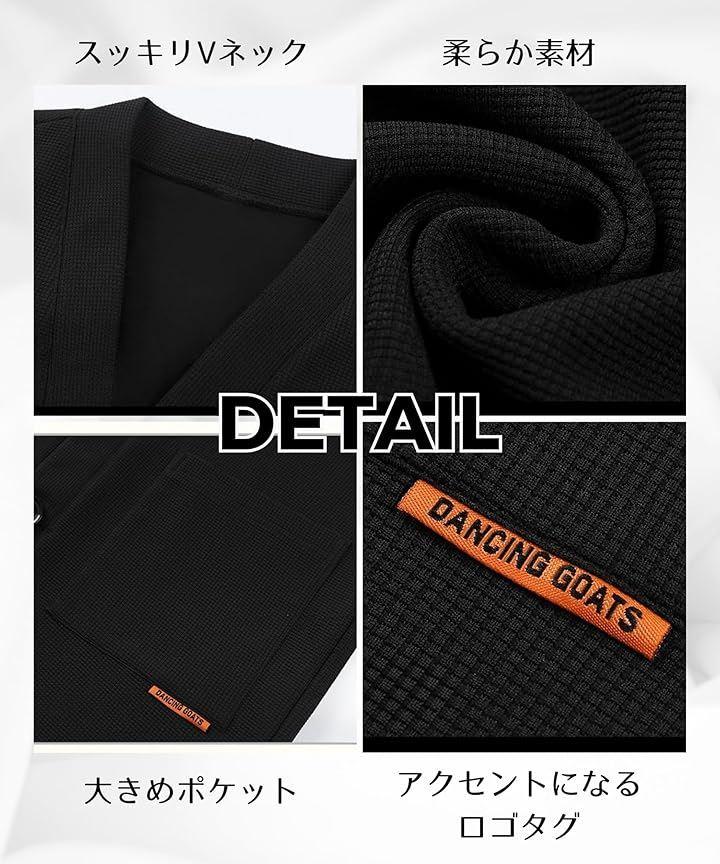 本品は、凹凸のあるワッフル調生地を採用したメンズ前開きカーディガン。
