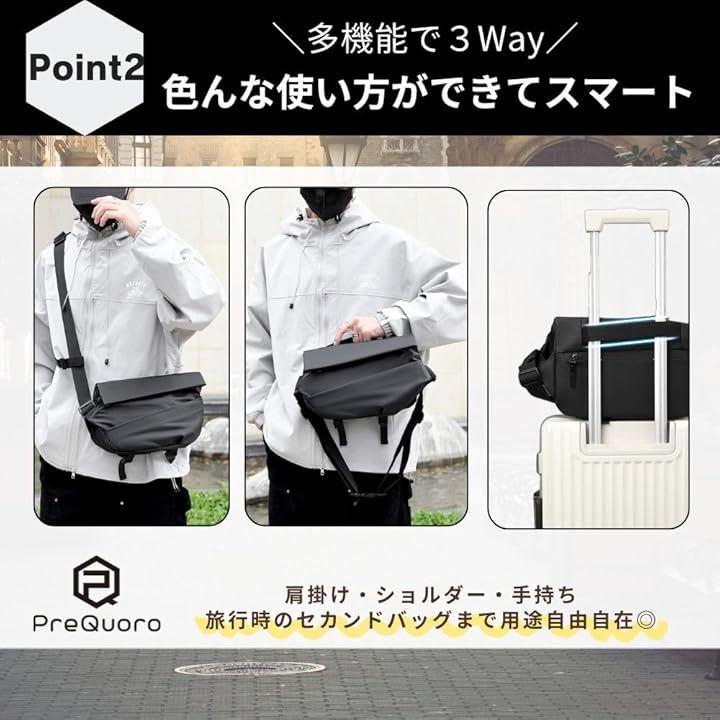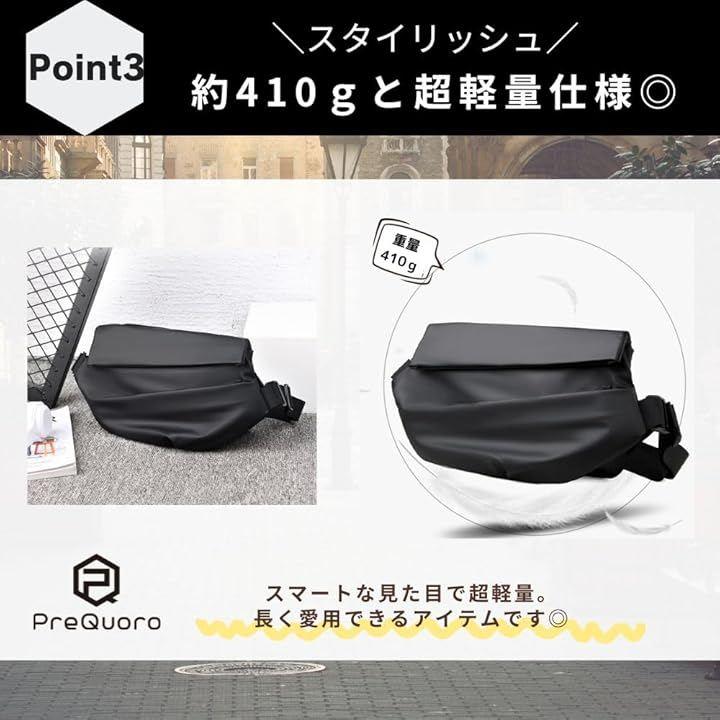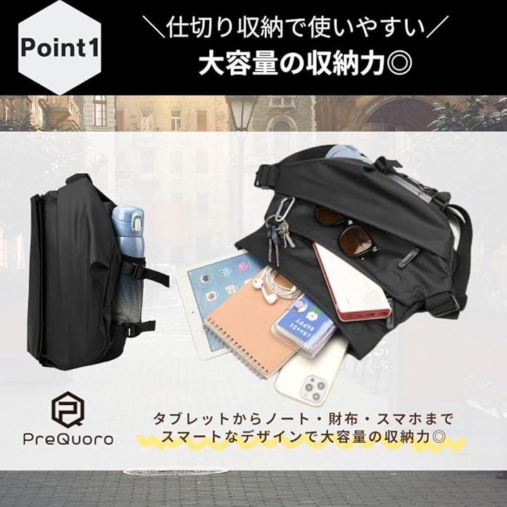 「旅先でも身軽にスマート収納」PreQruooのワンショルダーバッグは、旅行や街歩きに最適なサコッシュタイプ。