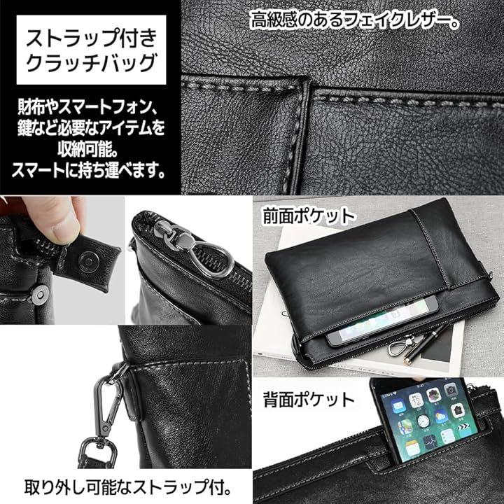 高級感のあるフェイクレザー素材が上品で洗練された雰囲気で見た目も質感もこだわったサブバッグです。