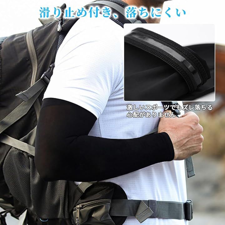 「ズレ防止&伸縮性優れ」アームカバー上腕口には滑り止めシリコンが加工されており、腕にしっかりと固定し、ズレを有効的に防止できます、伸縮性良いので、圧迫感がない。