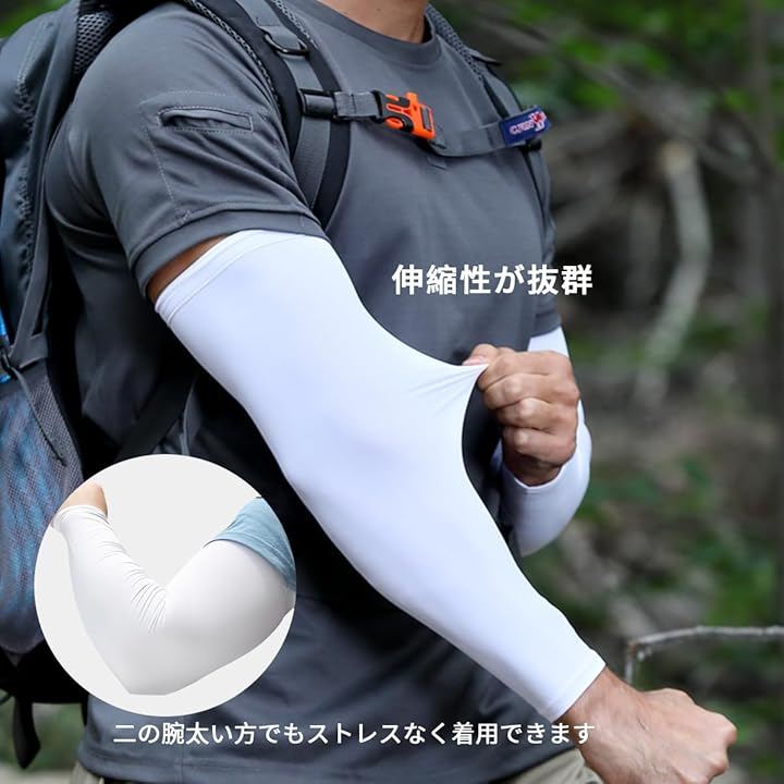 「メンズ冷感アームカバー」接触冷感素材を採用、肌に触れると瞬間的に涼しさを感じます。