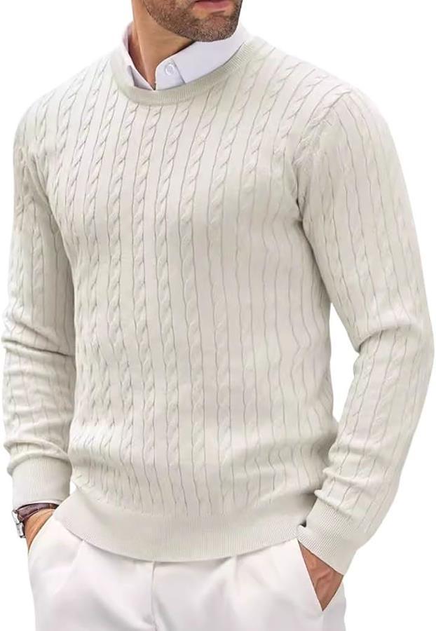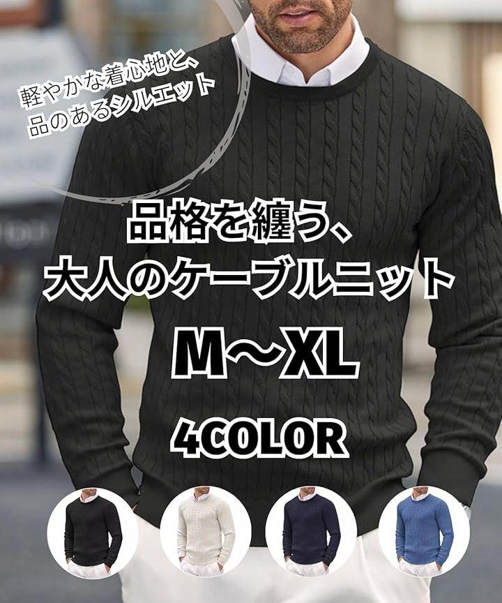 忙しいビジネスマンにもぴったりのメンズケーブルニットセーター。