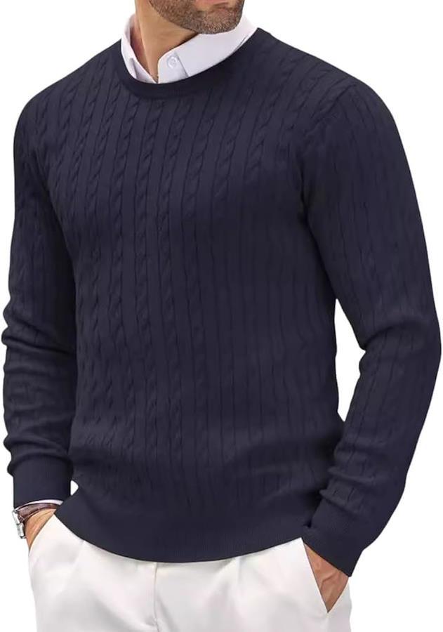 忙しいビジネスマンにもぴったりのメンズケーブルニットセーター。