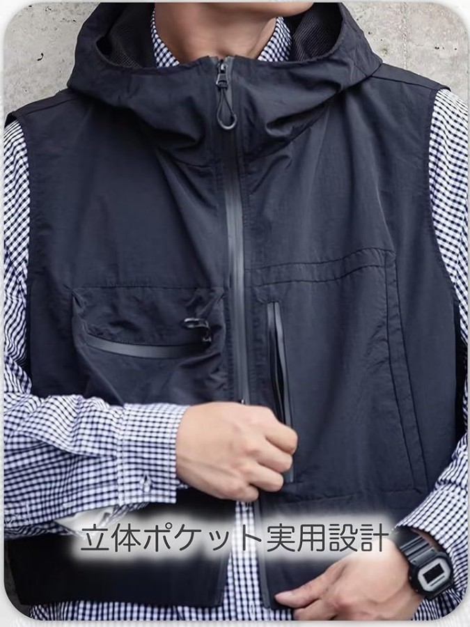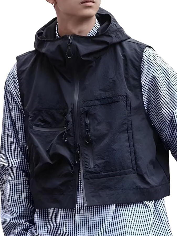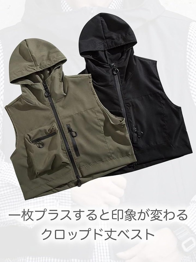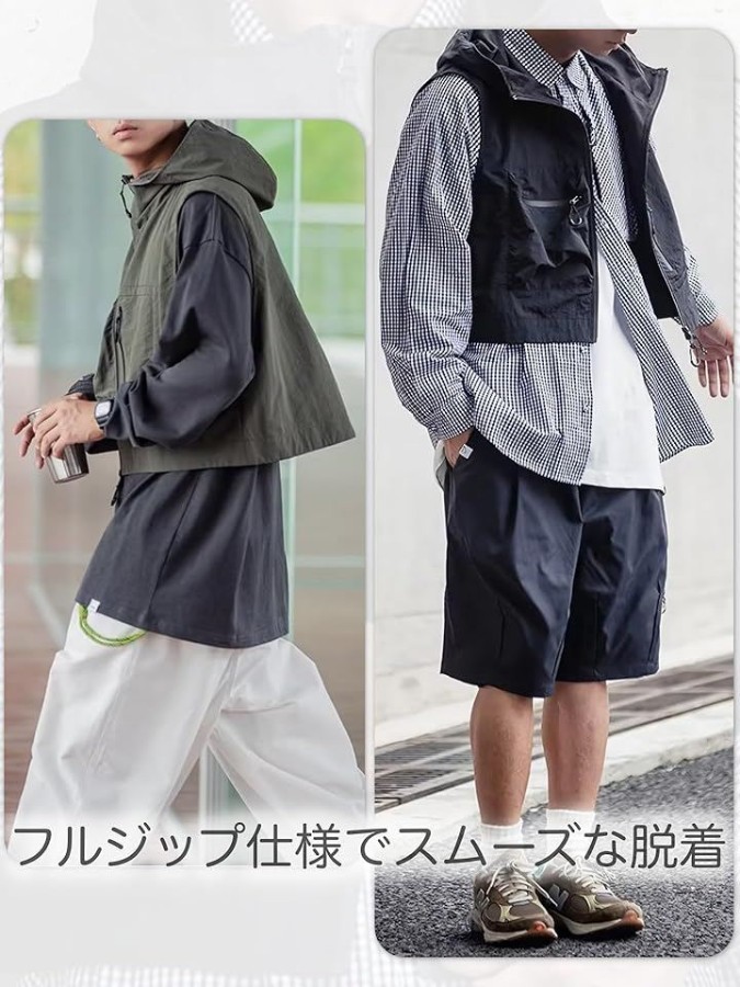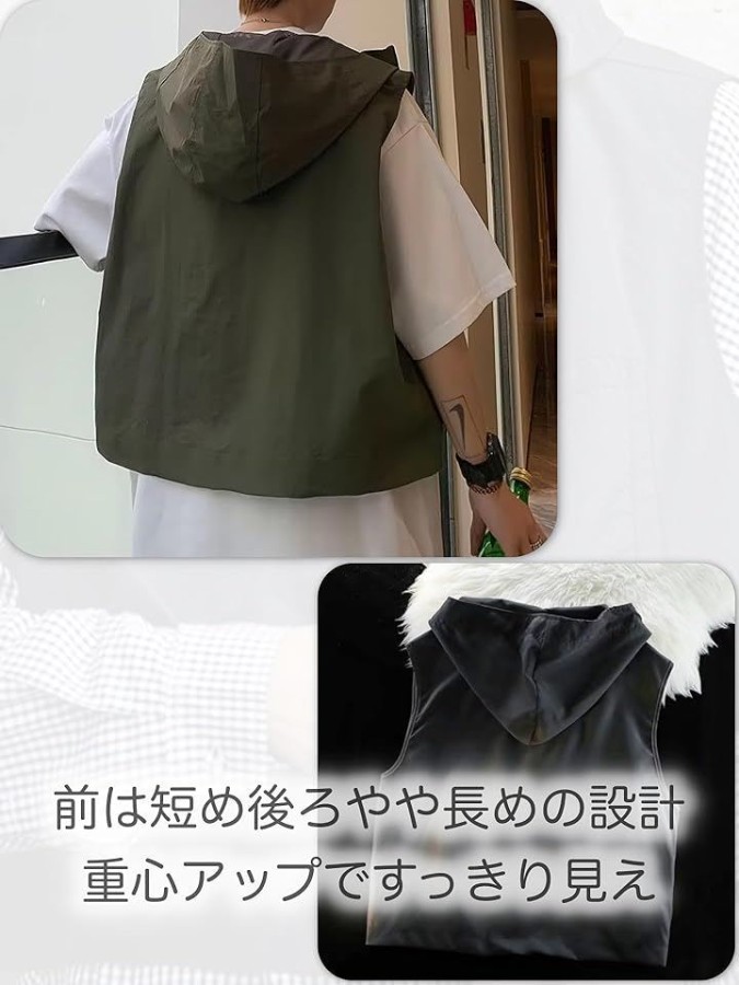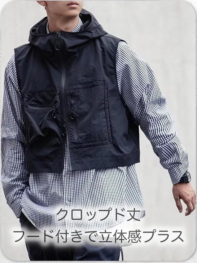[ [ブブ オーハナ] ベスト クロップド ショート 丈 フード付き フルジップアップ 無地 軽量 ゆったり 大きめ 重ね着 2ポケット メンズ ]