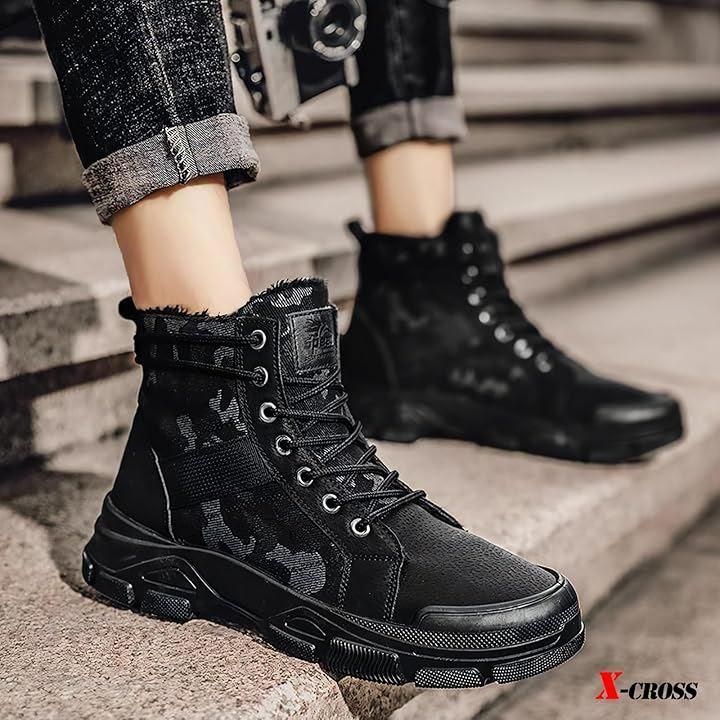 [X-cross(クロス)] ハイカットブーツ メンズ 防寒 迷彩 ミリタリーブーツ ボア 裏起毛 裏ボア スニーカー ショートブーツ カジュアル アウトドア ファッション おしゃれ かっこいい サバゲー アーミー 起毛 防寒靴 暖かい 冬 ウィンターブーツ 歩きやすい 靴 ウォーキング 通勤 通学 バイク 厚底 脚長 身長up 大きいサイズ 大人 キャンプ 釣り ウィンターブーツ 迷彩ブーツ *程よいボリュームのあるソールで、安定感もありながらスタイルも綺麗に見せでマルチに活躍するミリタリーブーツが登場しました。
