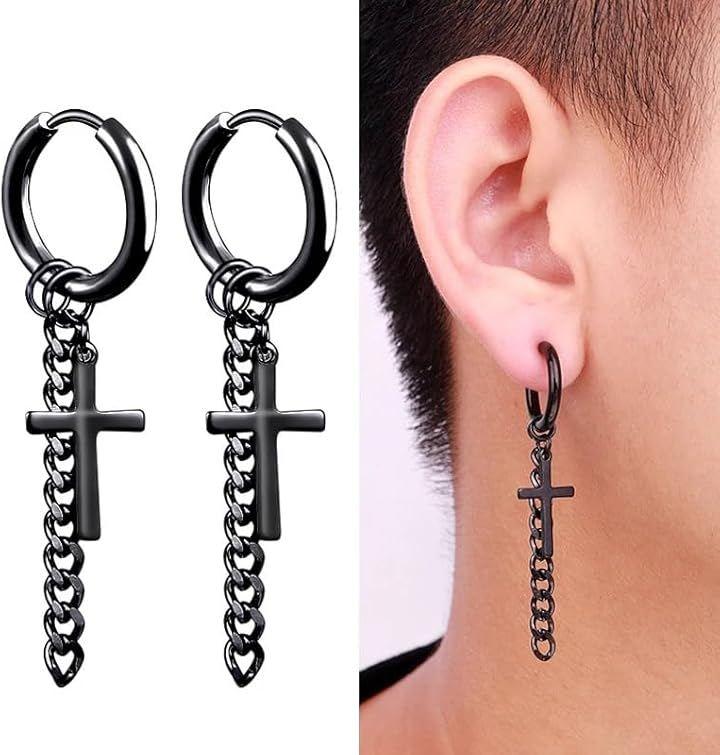 大人気 定番のクロスリングピアス/イヤリング。ブラック 両耳用:2つ入り 素材はサージカルステンレス メンズ・レディースどちらにもおススメです。
