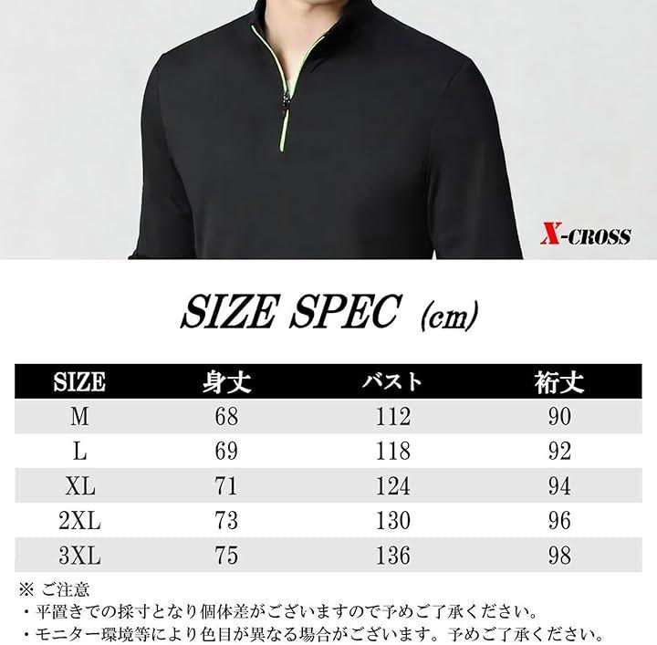 *シンプルザインでどんなコーディネートにもマッチするハーフジップアウターの登場しました*ジッパー部分にはアクセントカラーをあしらった、柔らかな着心地のトップス*通気の良い素材で、ストレッチ性も兼ね備えたハーフジップトレーナー*激しい運動にも快適に動くことができ、着心地もちょうどいい一枚*首元が調整しやすいハーフジップデザインとストレッチ性のある素材を採用したのでスポーツ、レジャーだけでなくオシャレも楽しめる一枚*肌側が薄い起毛なので、着た瞬間から暖かさと保温性あり*春秋冬のゴルフウエアやアウトドアアイテムとしてもオススメの一枚*1枚でも、さらにアウターを重ねてもコーディネートが簡単に決まる優れたアイテム「素材」100% ポリエステル「サイズ」(M) バスト:112cm 身丈:68cm 裄丈:90cm (L) バスト:118cm 身丈:69cm 裄丈:92cm (XL) バスト:124cm 身丈:71cm 裄丈:94cm (2XL) バスト:130cm 身丈:73cm 裄丈:96cm (3XL) バスト:136cm 身丈:75cm 裄丈:98cm*寸法は実物を平置きにて採寸しております。