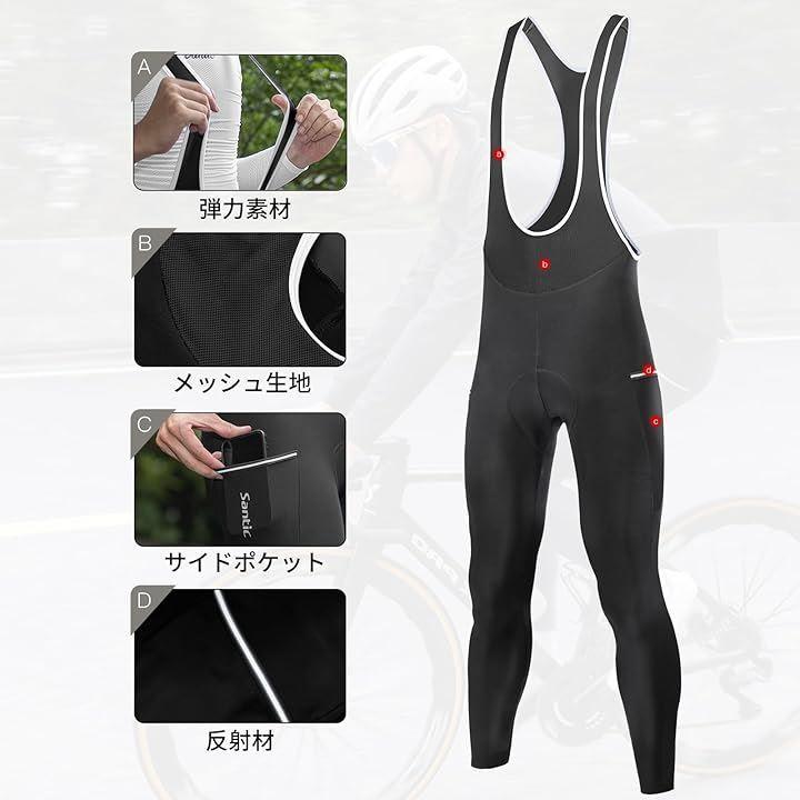 Men's Cycling Bib Pants, Fleece-Lined, Long Cycling Tights with Pads, Cold and Windproof