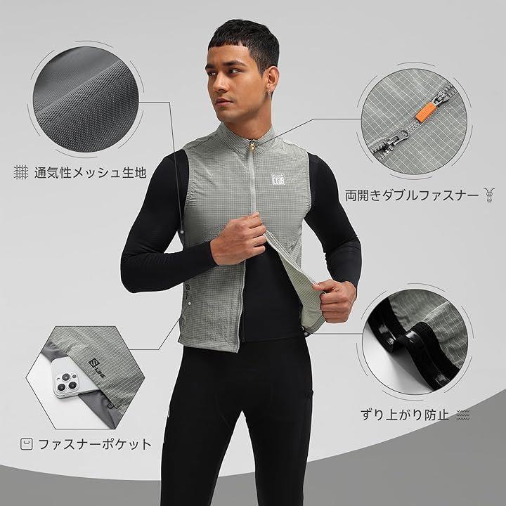 防風素材と側面は透気性が優れた素材ストレッチ素材を使用し、汗や湿気を素早く体から逃がしてドライを保つことができます。