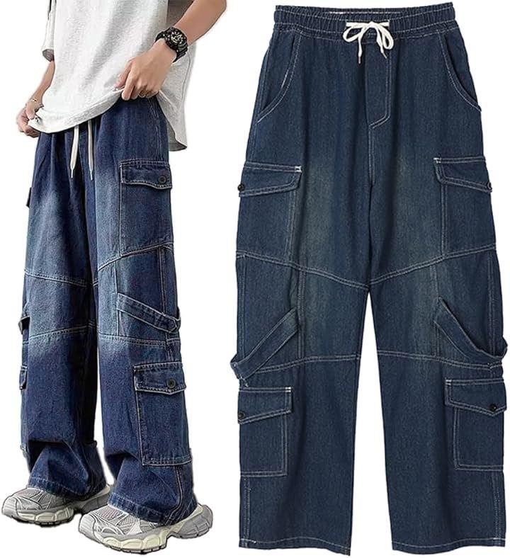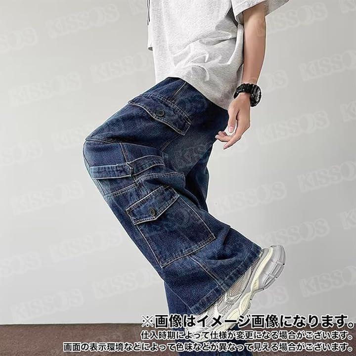 韓国ファッションらしいルーズなシルエットのデニム調ワイドカーゴパンツ。