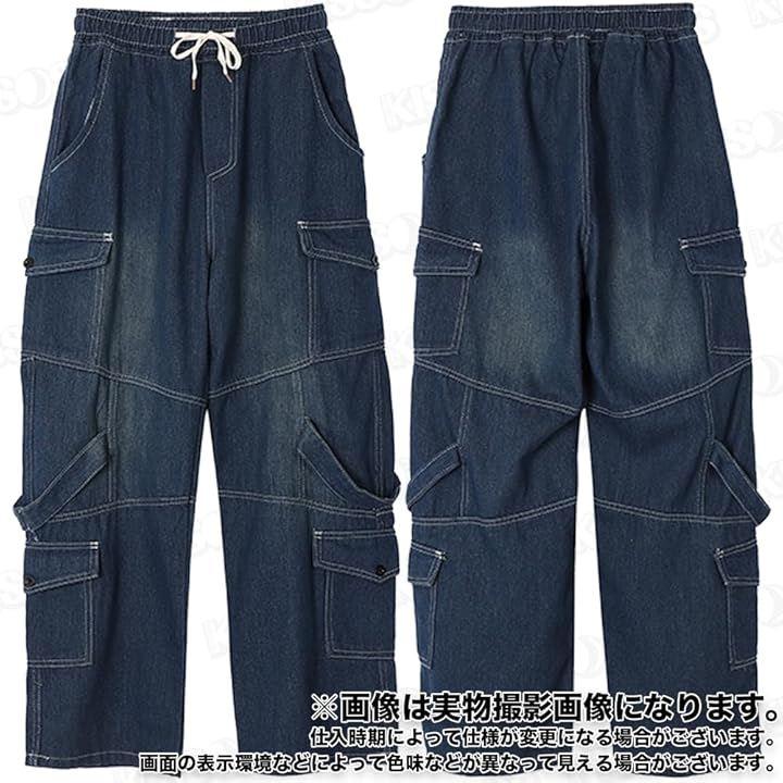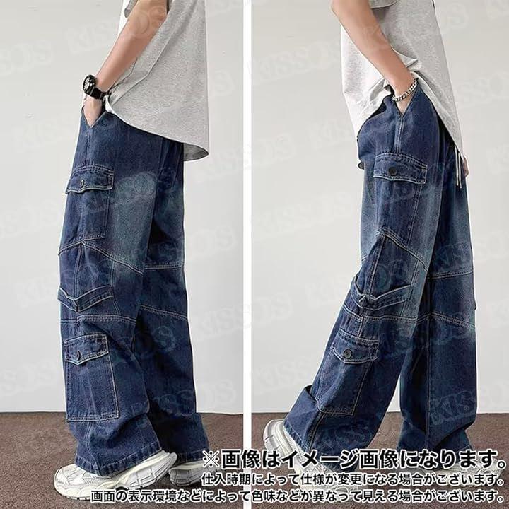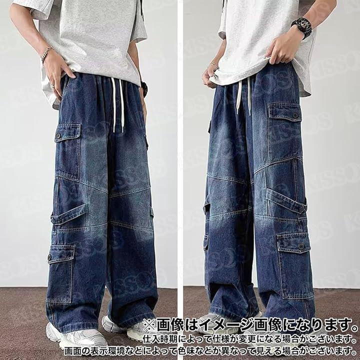 韓国ファッションらしいルーズなシルエットのデニム調ワイドカーゴパンツ。