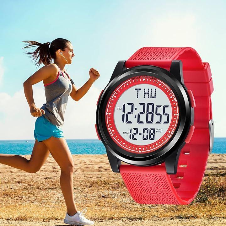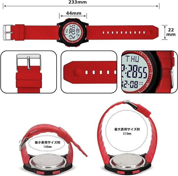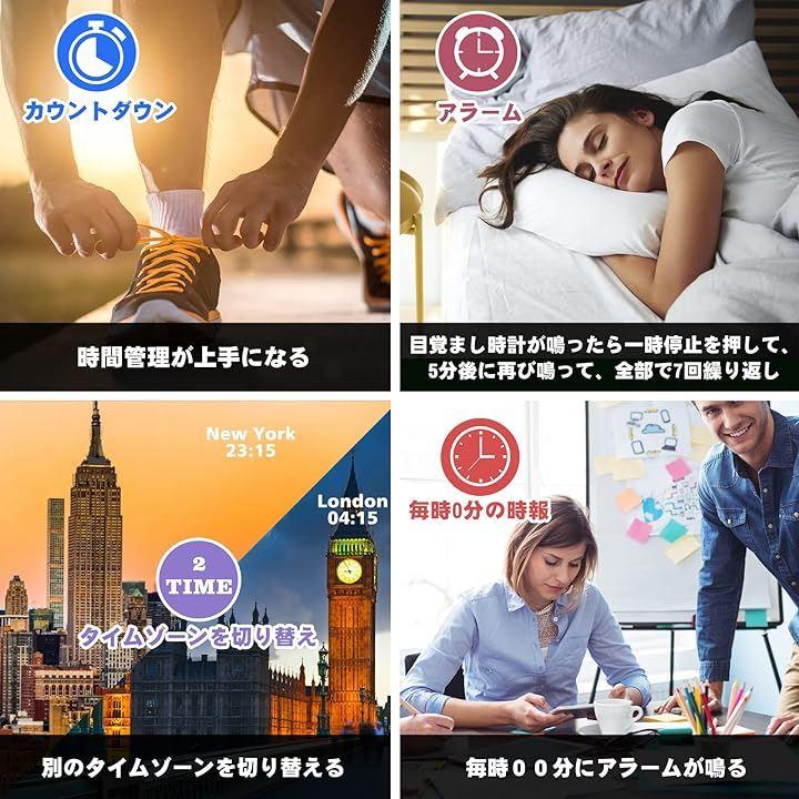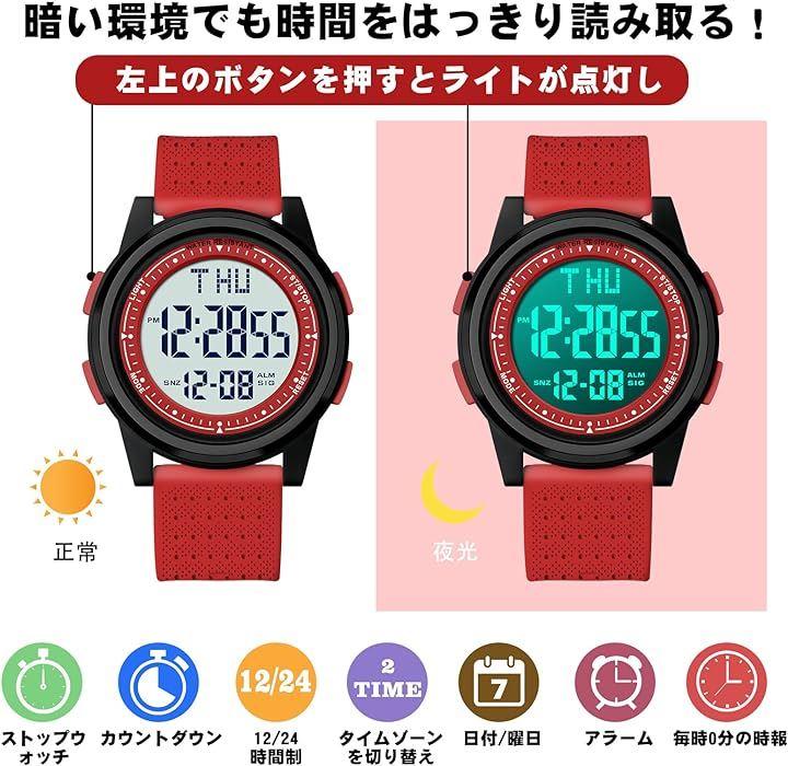 ♚[多機能付き デジタル腕時計]デジタル表示、LEDバックライト、日付、曜日、アラーム、ストップウォッチ、カウントダウン、タイムゾーンを切り替え、毎時0分の時報の機能が含まれて、日常使いに最適。