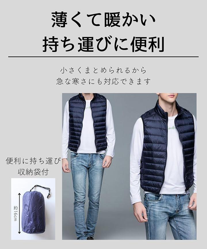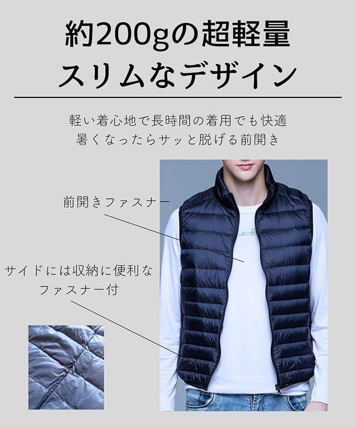「 軽やかな着心地で冬を快適に」超軽量で薄いデザインながら、ホワイトダックダウン50%の中綿がふんわりとした温かさを提供します。