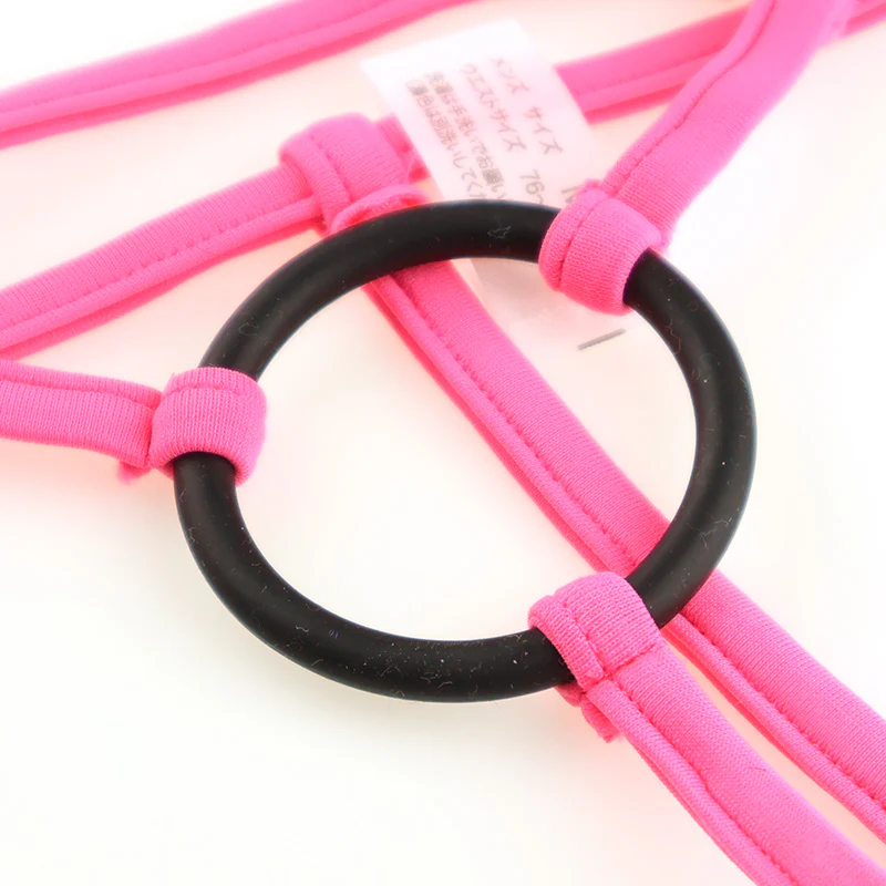 この生地は、発色が豊かでハリがあり、触り心地が気持ち良く、さらに伸縮性が高いストレッチ素材のE6000生地を使用したGストリングになります。フロントには男性自身を締め付ける内径約40mmのブラックパワーリング付のセクシービキニになります。リングはシリコンになり程よく男性自身をサポートする下着になります。