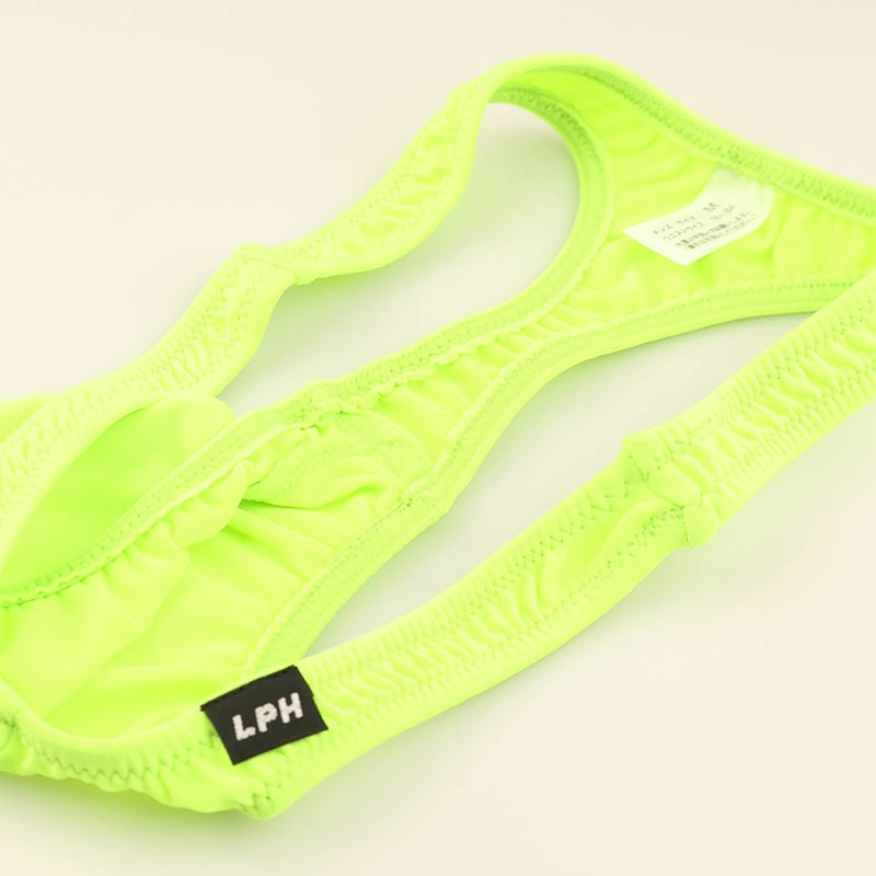 発色の良さと優れた伸縮性のE6000生地 を使用したメンズTバックビキニ。しっとりと吸い付くような気持ちの良い肌触りで、日常から特別なシーンまで快適な穿き心地を実現します。股上は浅めのローライズ設計で、腰まわりをすっきりと見せながらスタイリッシュな印象に。フロントには、男性自身が自然に収まりやすい 上向き3Dポーチ を採用し、立体的で無理のないフィット感を追求しました。ほどよく身体に馴染むストレッチ性が魅力の、スマートで機能的なTバックビキニです。置き寸で股上約10cm。