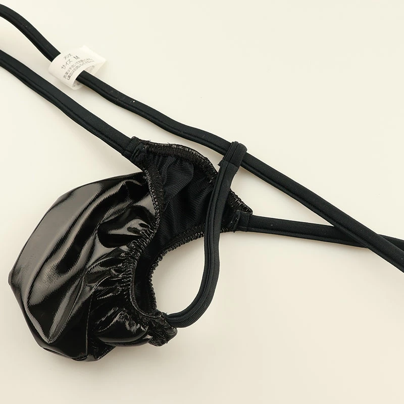 エナメル生地は、独特の光沢と艶やかな外観が魅力です。滑らかで冷たい手触りが特徴で、ポリウレタンやPVCでコーティングされた布地が使われているエナメル合皮生地を使用したGストリングビキニになります。とても生地の面積が小さくなった極小タイプのメンズセクシー下着になります。この生地は強い摩擦や高温には注意が必要です