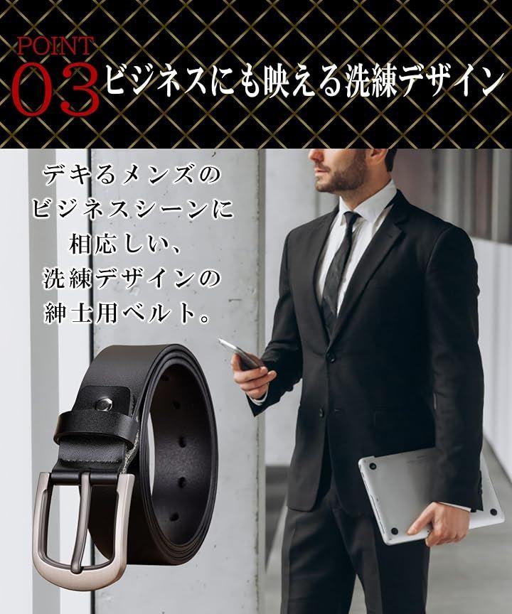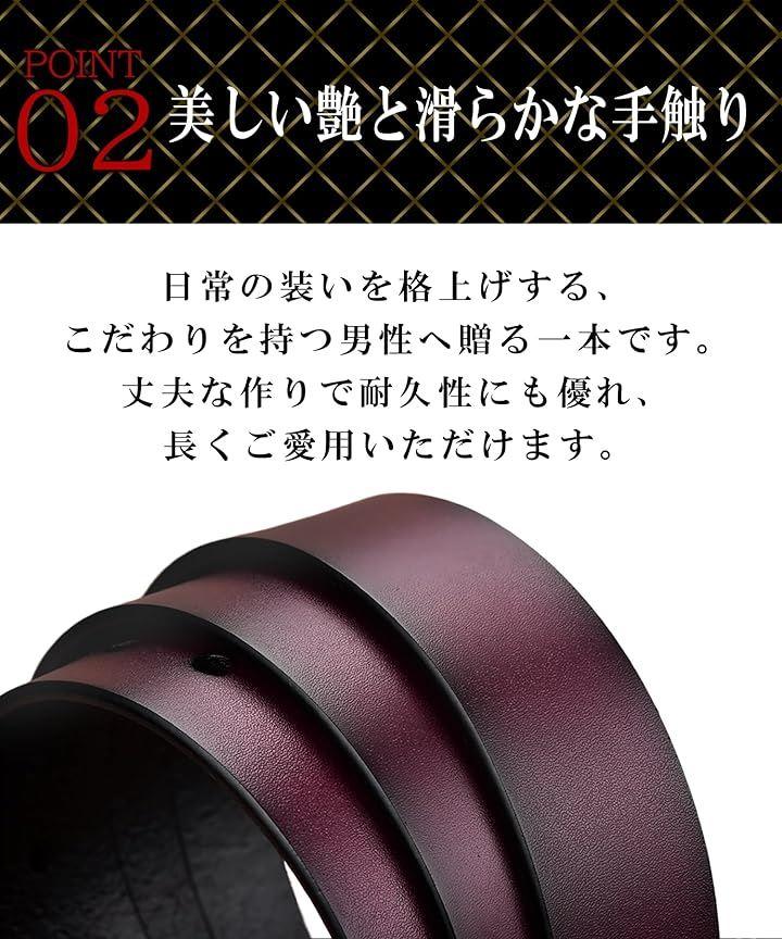 「上質な本革の風格」このメンズ革ベルトは、厳選された上質な本革を使用。