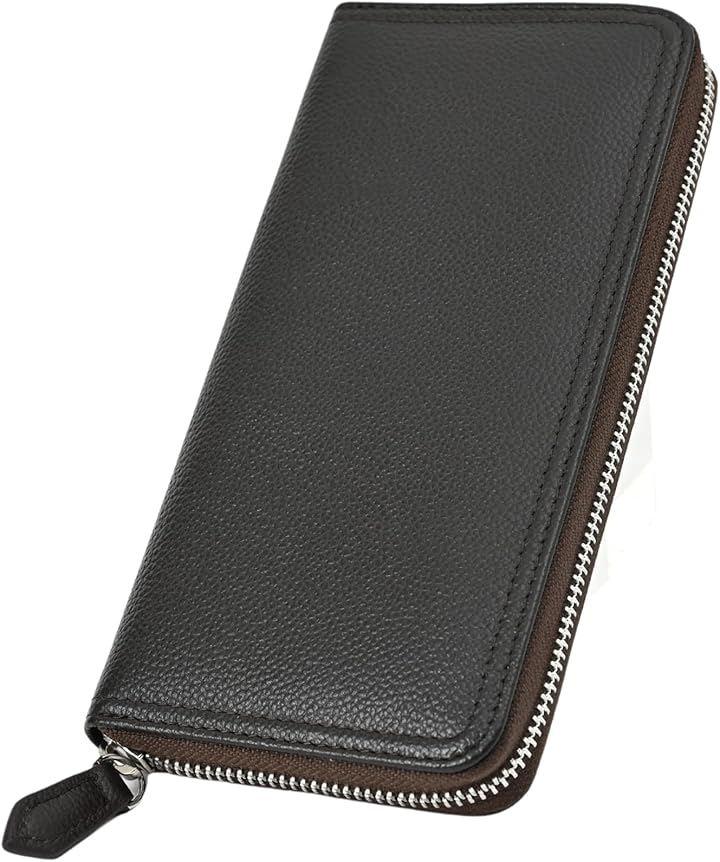 Men's Genuine Leather Long Wallet with Zip-Around Closure, Compact Design, Anti-Skimming, Lightweight, Simple Design, Gift Box Included