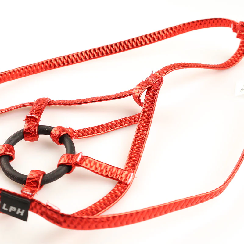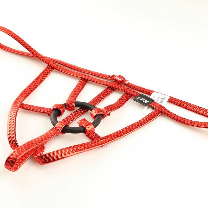 艶やかでキラキラと輝くメタリック生地を贅沢に使用した、視線を奪うセクシーなサポートビキニ。大胆なスパイダーデザインが肌に絡みつくように広がり、独特の妖艶な雰囲気を演出します。フロントセンターには内径約32mmのブラックパワーリングを配置し、アクセントと共にしっかりとしたホールド感を実現。美しい光沢と機能性を兼ね備えた、クラブやイベント、特別な夜にふさわしい一着です。