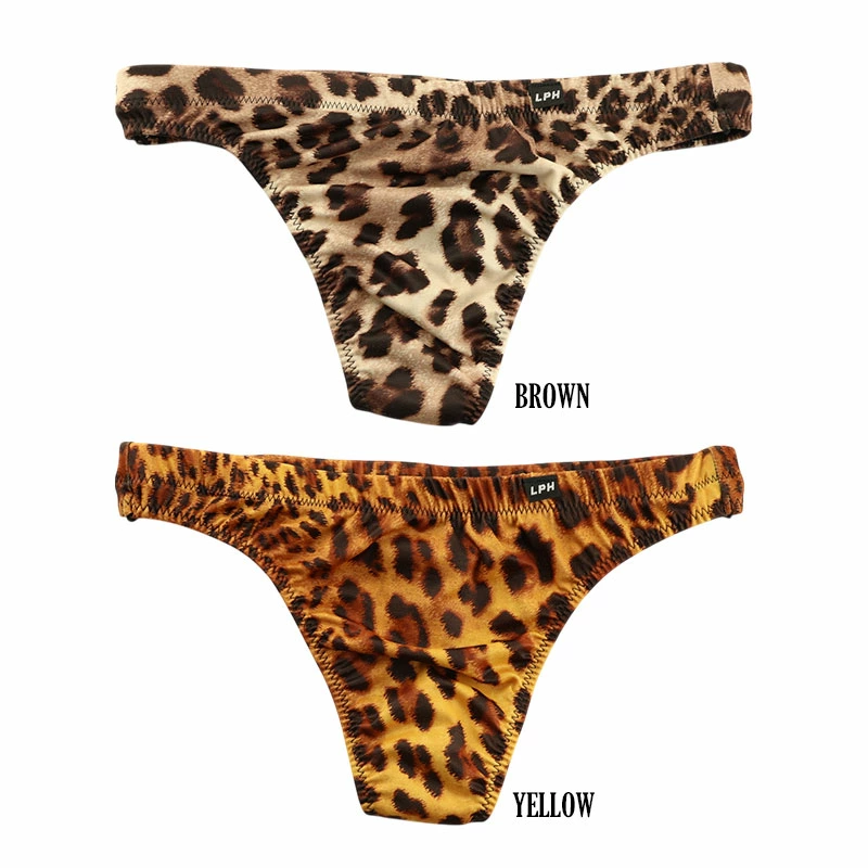 この生地は発色が豊かでハリがあり、触り心地が気持ち良く、さらに伸縮性が高く生地の表面は光沢感のあるストレッチ素材の生地を使用したTバックビキニになります。レオパードプリントでカッコイイ見た目になった、とても着用しやすい男性用下着になります。