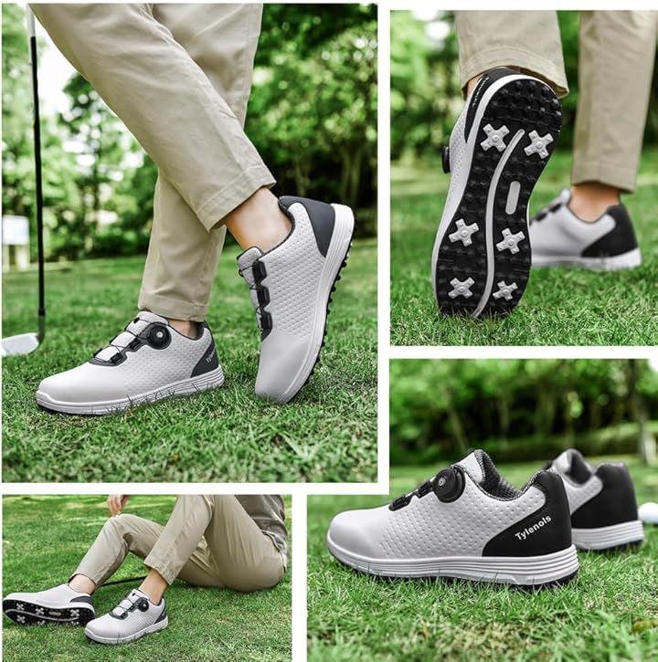 本モデルはダイヤル式の素早い調整と、多方向に噛むスパイクレスパターンで、アドレスからフォローまでブレにくい足元を実現。