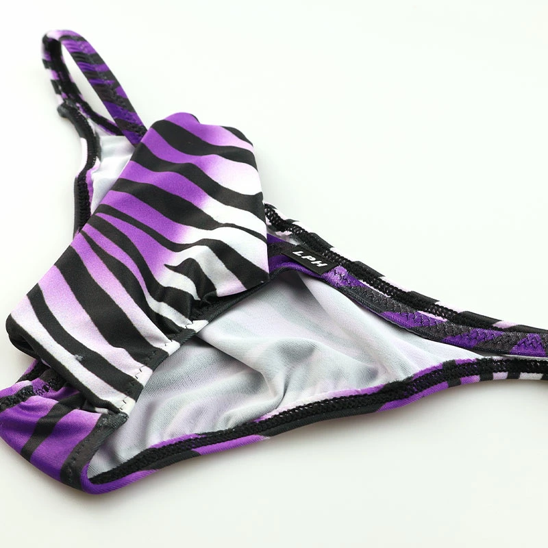 生地表面に上品な光沢感があり、抜群の伸縮性を備えたシルキーで気持ちの良い肌触りが特徴のメンズハーフバックビキニ。なめらかな素材が身体に吸い付くようにフィットし、快適な着用感を実現します。フロントは男性自身が自然と収まる上向き3Dポーチ型の立体構造を採用し、圧迫感を抑えつつ美しいフォルムを演出。置き寸で股上約11cmのバランスの取れた設計により、シャープでスタイリッシュなシルエットを際立たせます。脇重ね仕様で細く仕上げたデザインに、存在感のあるゼブラプリントを組み合わせたクールでカッコいい男性用下着です。