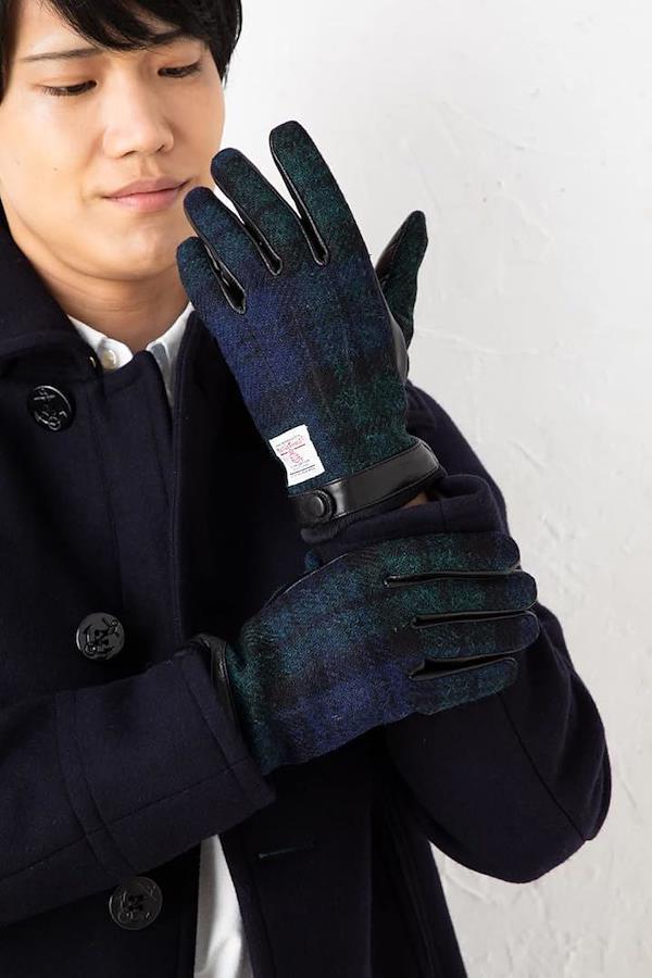 素材: 甲部分(ハリスツイード(ウール)) 掌部分(羊革)