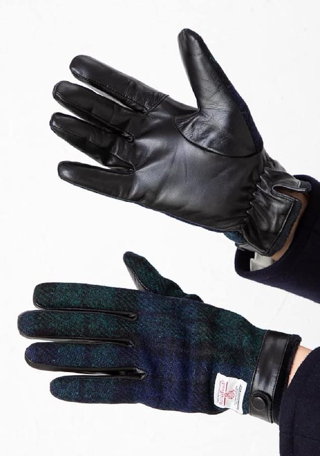 甲部分に有名なイギリスのハリス社のツイード生地を用いた手袋になります。