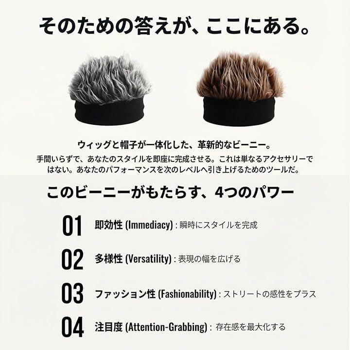 「多様性」2色セットで、グレーとブラウンのウィッグ付き帽子が揃っています。