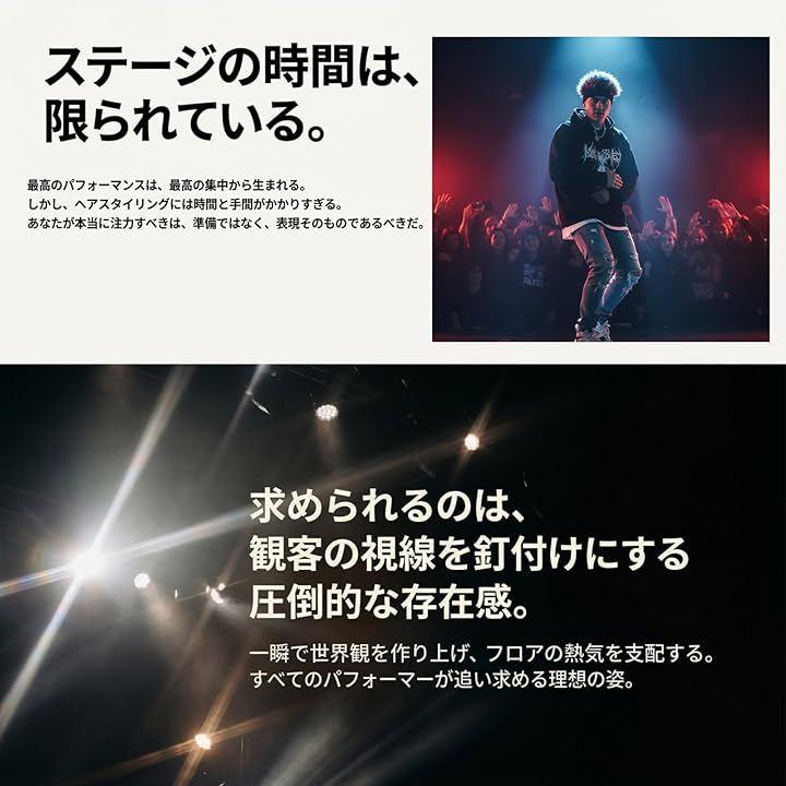 ヒップホップやストリートダンスのステージで、手間いらずでスタイルを完成させます。