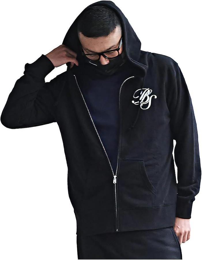 バックプリントのクールなワードがカッコイイZIPアップフーディー。