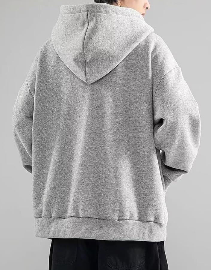 カジュアルな裏起毛パーカーは、スニーカー・ブーツ・サンダルの靴・シューズも合わせやすく、シンプルかつ御洒落で、ストリートスタイルにも。イヤホンやピアス・ブレスレット・リングのアクセサリーも映えます。