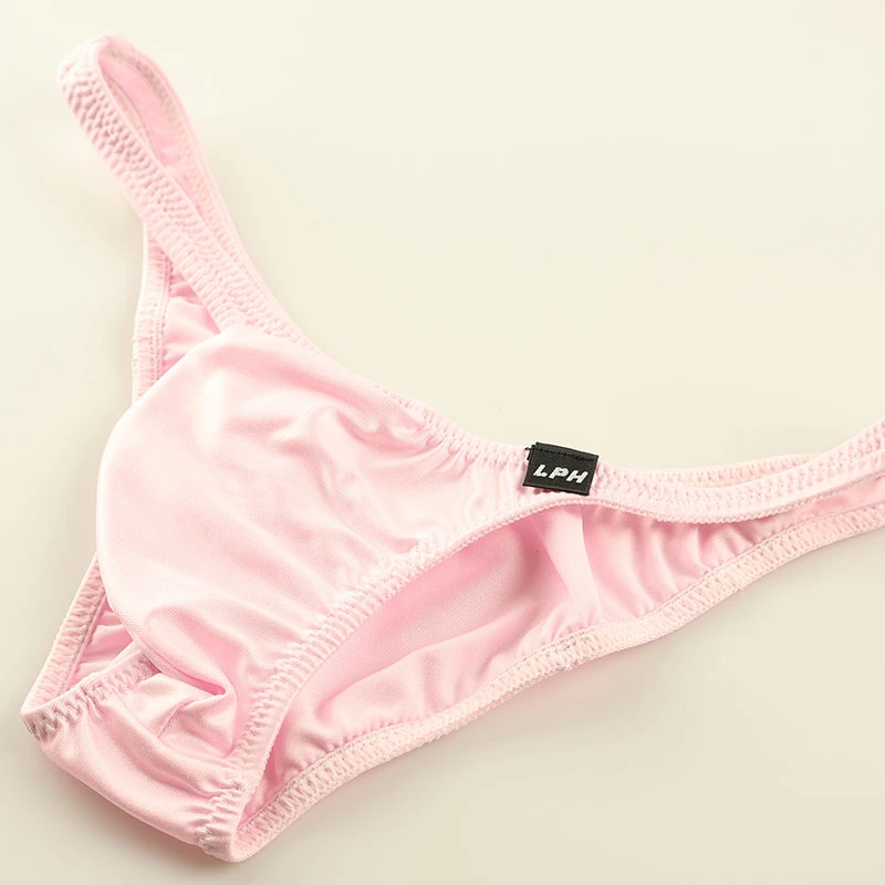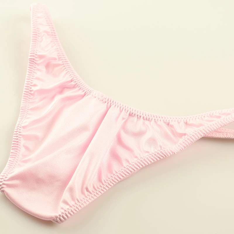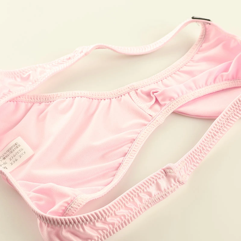 光沢感のあるWET素材のストレッチ生地は、見る人の目を引く輝きを持ち、触れるとしっとりとした滑らかさが感じられます。その表面は光を反射して、独特の輝きを放ち、ストレッチ性があるため着用時の動きを制限せずに体にフィットするハーフバックビキニになります。フロントは男性自身が収まりの良い3Dポーチになり置き寸で約11.5cmの浅い股上になった極小セクシービキニになります。