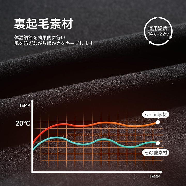 「裏起毛素材」フリース生地で、肌触りが柔らかく保温性に優れると同時に,適度な通気性を確保して蒸れを防ぎます。