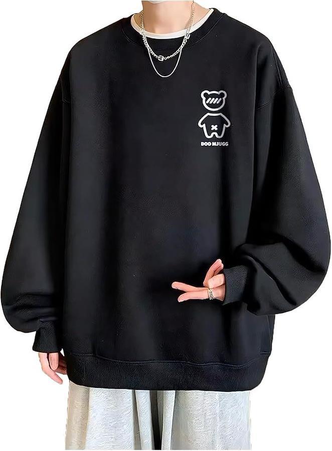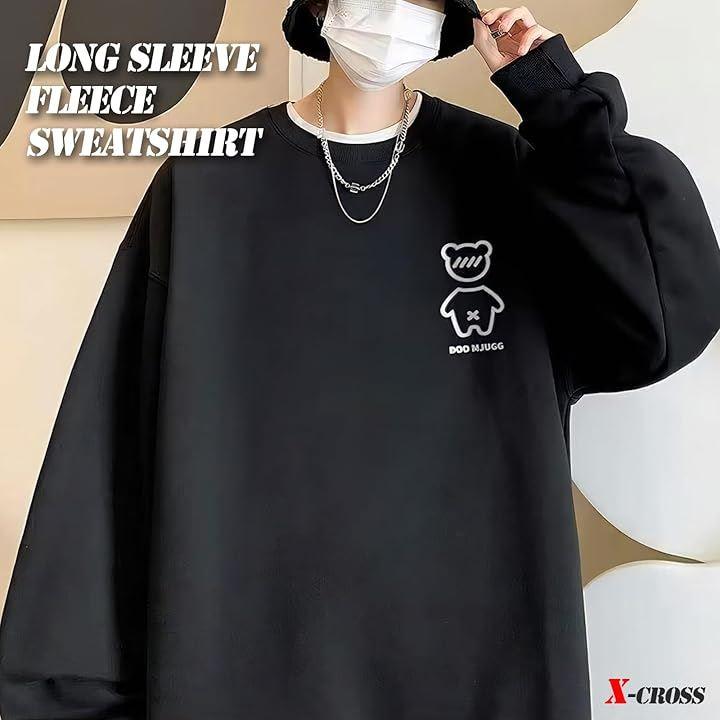 Men's long-sleeved cross trainer with thick fleece lining. Plus sizes available. Warm and stylish, oversized silhouette. Korean-style loungewear for sports, outdoor activities, and fall/winter wear.