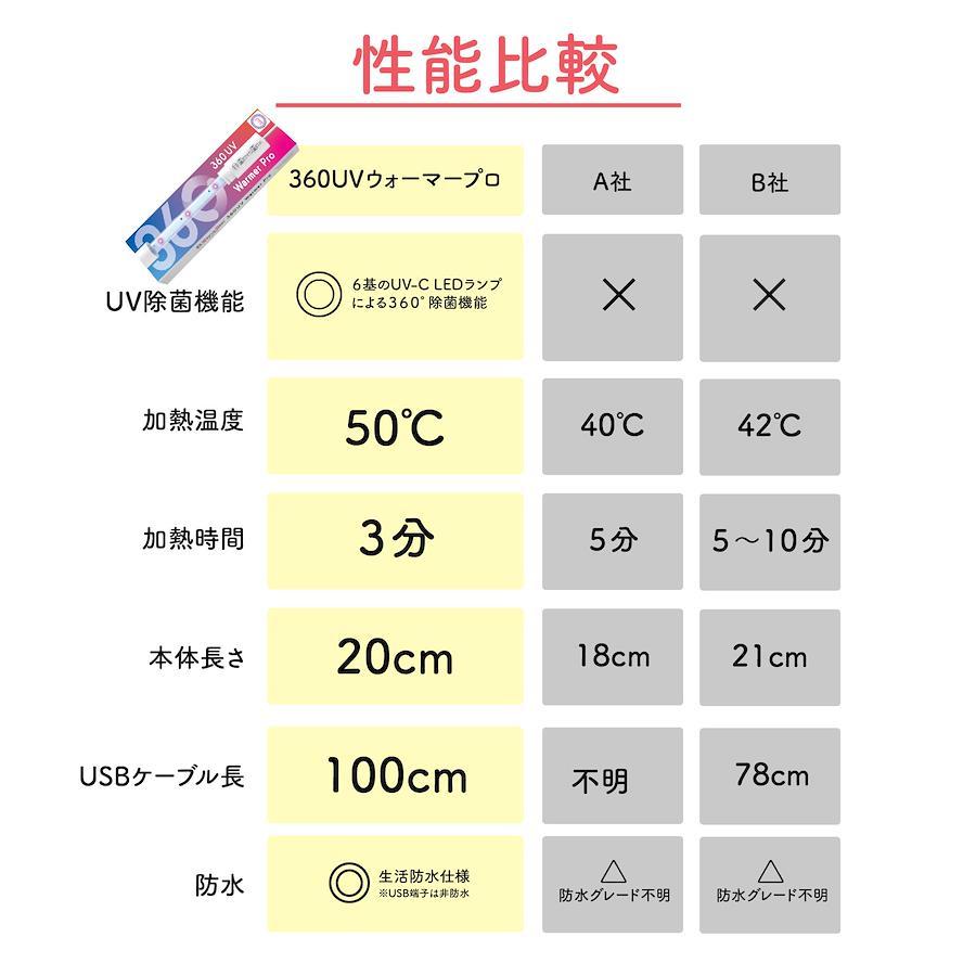 Men's Max 360 UV Warmer Pro, Rapid Heating in 5 Minutes, 360° Sterilizing UV Light, 20cm Total Length, Includes Absorbent Soft Stick, 1m USB Cable