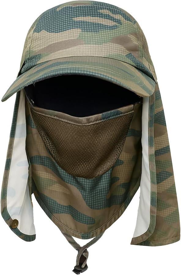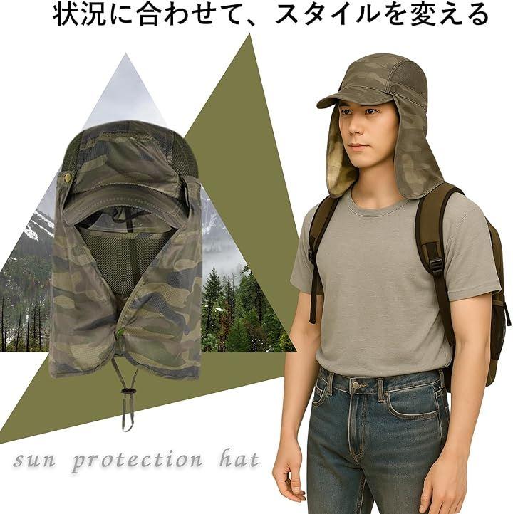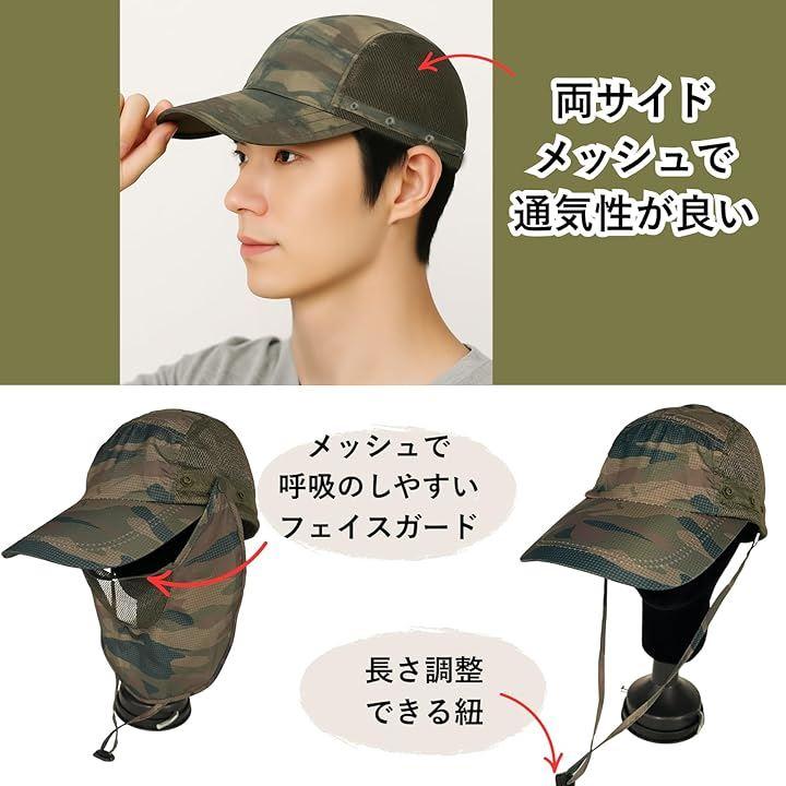 「UPF50+。メンズ日よけ帽子 紫外線防止 フェイスカバー付きキャップ」 屋外での活動を強力にサポートする、メンズ向けの日よけ帽子です。