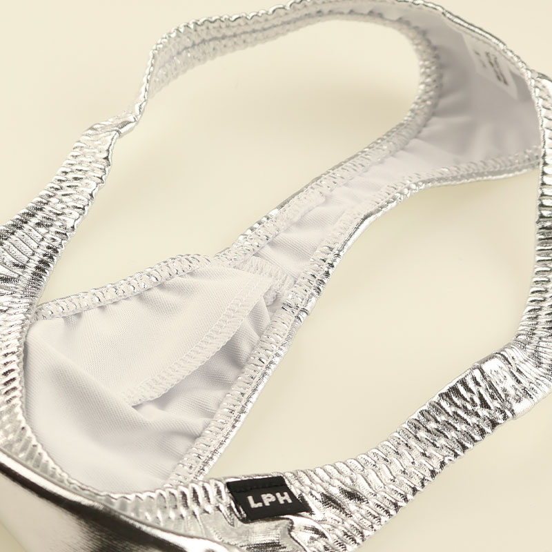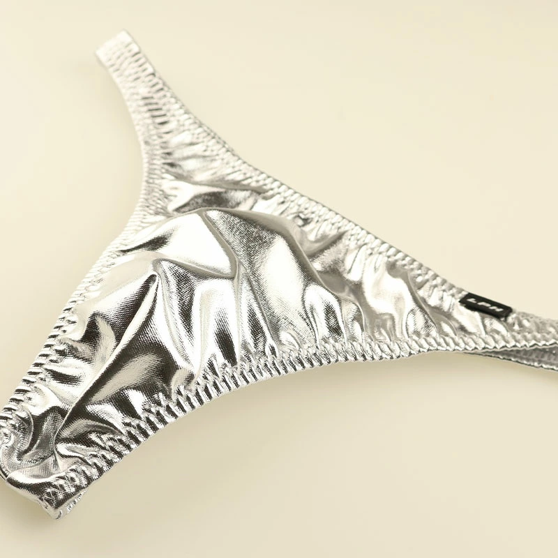 キラキラと輝くメタリック生地を使用した、目を引く華やかなデザインのTバックビキニ。フロントはハーフシーム仕様になっており、男性自身をしっかり収めやすい設計に仕上げました。伸縮性に優れた生地がボディに心地よくフィットし、美しいシルエットと快適な着用感を両立。セクシーでありながら機能性も兼ね備えた、大人の魅力を引き立てる一枚です。特別なシーンはもちろん、日常のインナーとしてもおすすめのデザインです。