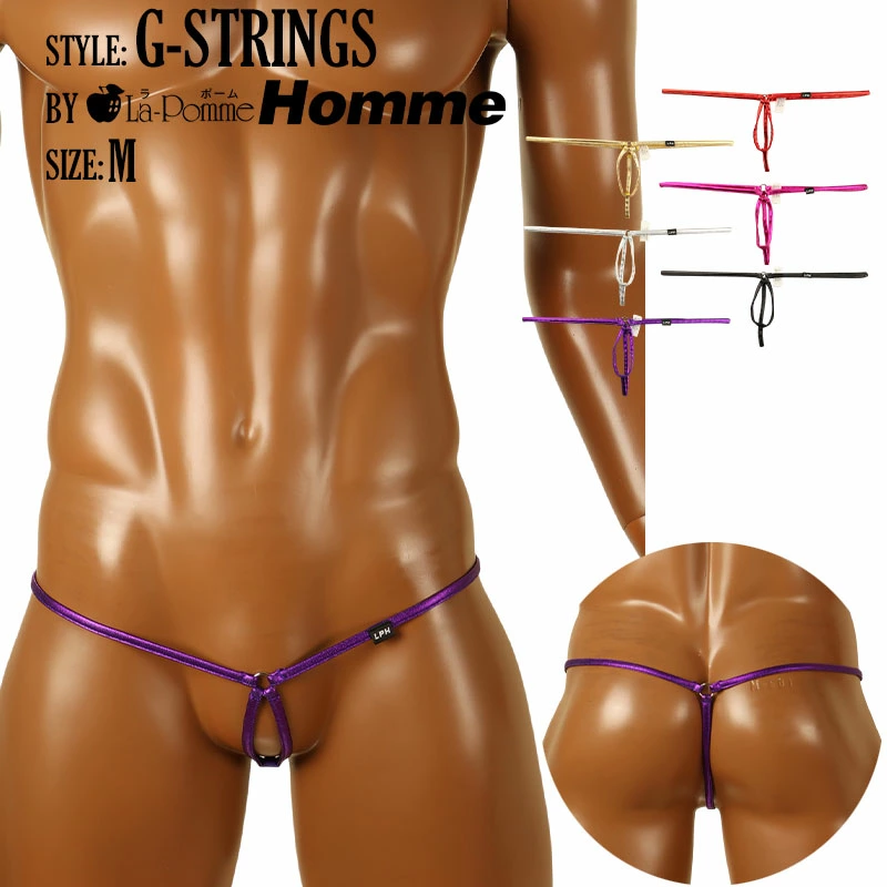 キラキラと目を引く輝きを放つメタリック生地を使用した、大胆なデザインのGストリングビキニ。フロントがオープン仕様になっており、男性自身をすべて曝け出す刺激的なスタイルを実現。伸縮性に優れた生地がボディに心地よくフィットし、セクシーかつスタイリッシュなシルエットを演出します。挑発的で個性的なデザインが、特別なシーンや大胆なスタイルを楽しみたい方にぴったりの一枚です。