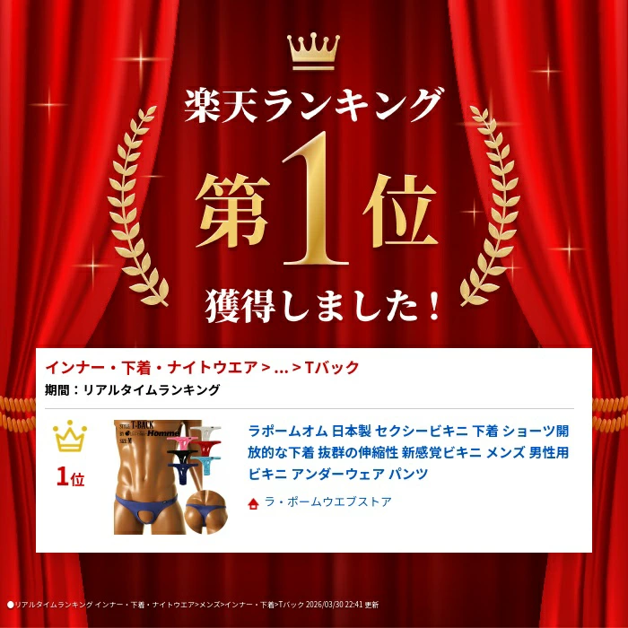 伸縮性に優れしっとりとした肌触りが特徴のTバックビキニになります。フロントは男性自身を全て出す為の穴が開いた開放的でセクシーなオープン下着になります。