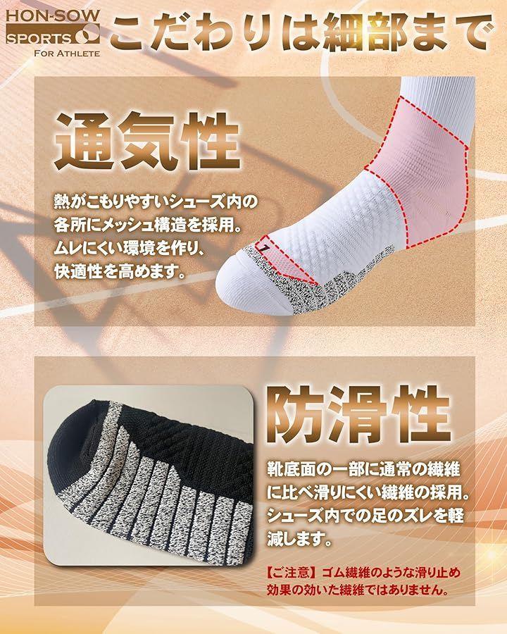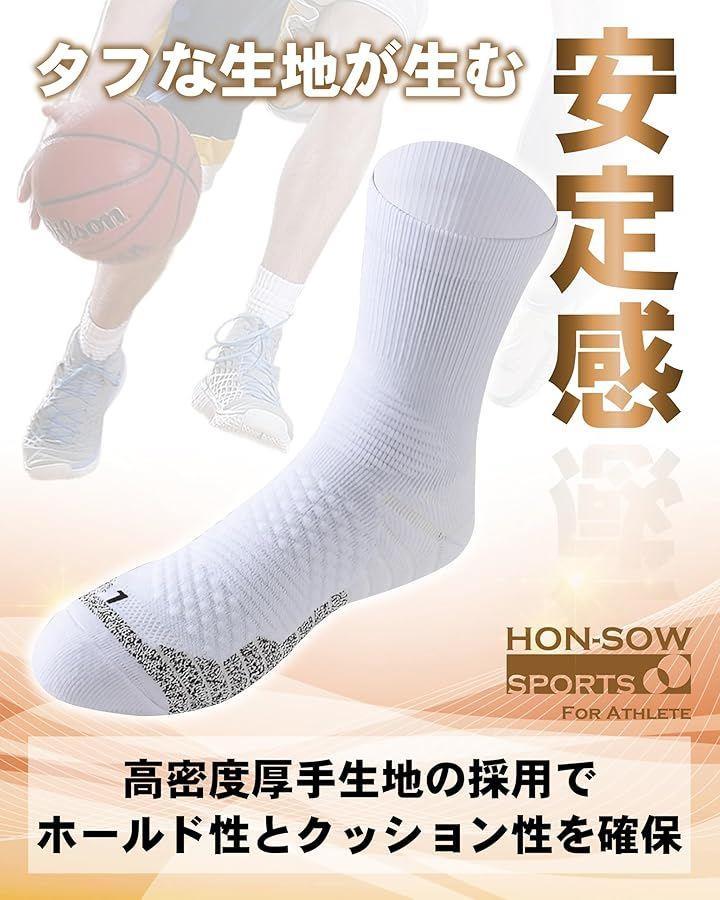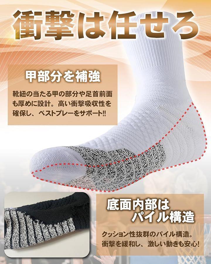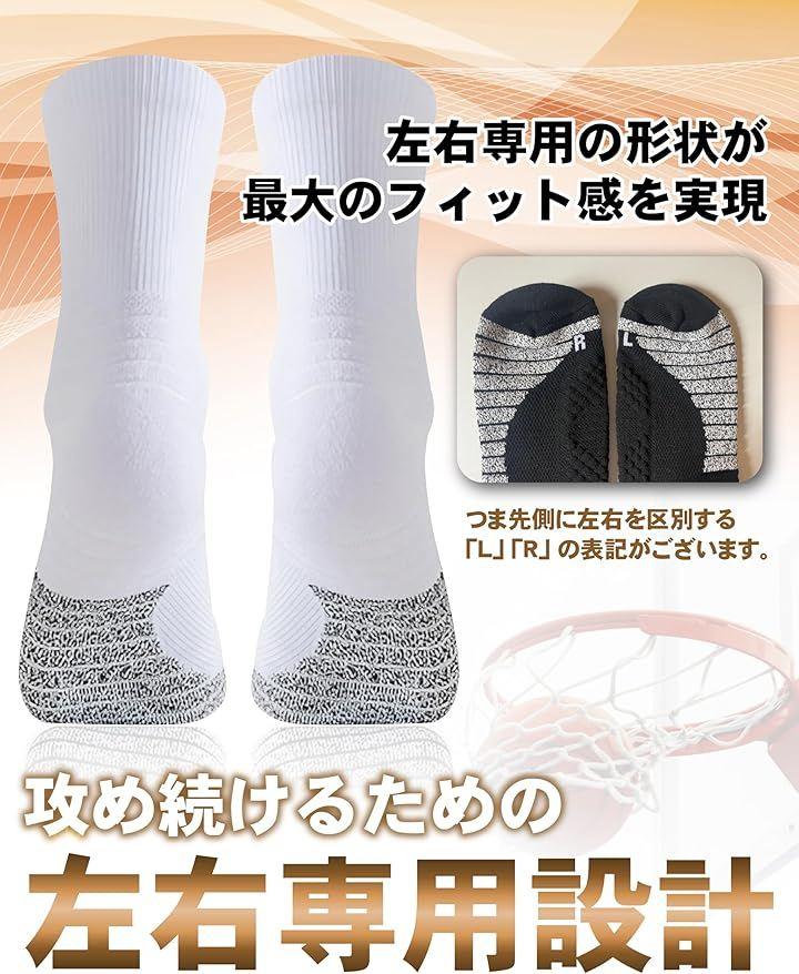バスケットボールの激しい動きによる足への負担を軽減するために開発された専用ソックスです。