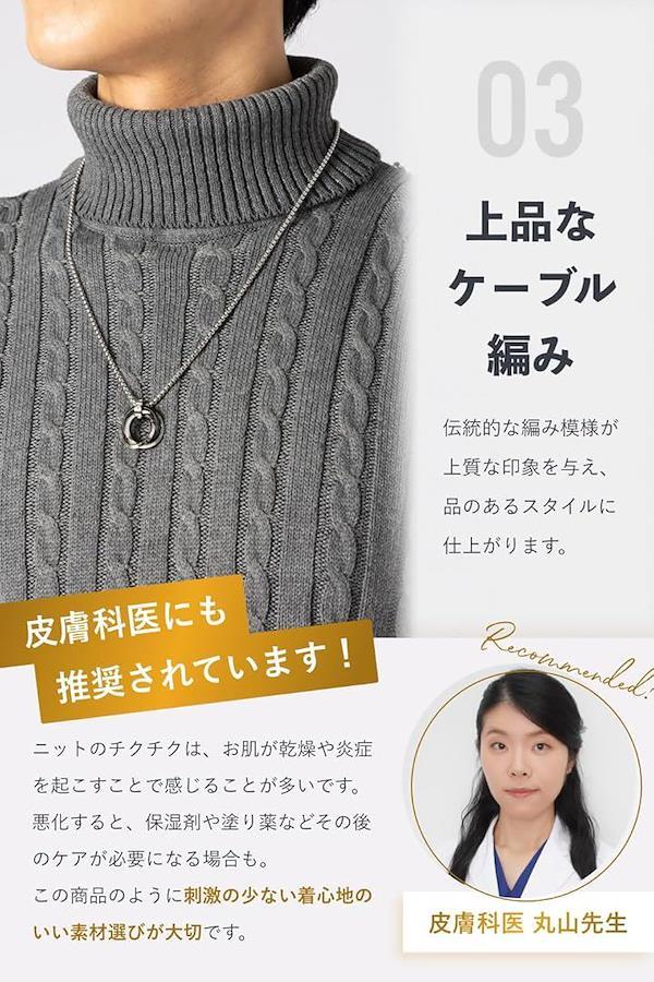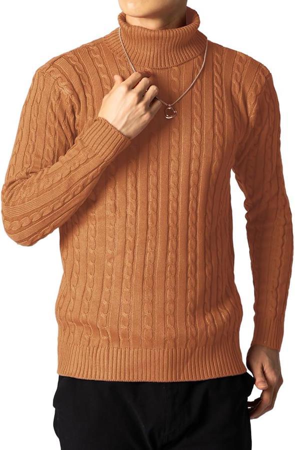 「上品さとスタイリッシュさを兼ね備えた」高いデザイン性とスリムなシルエットが特徴のケーブル編みニットタートルネックセーター。