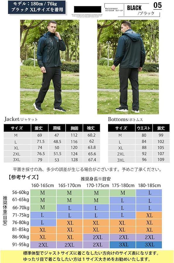 「利用シーン」登山、釣り、バイク、アウトドア、キャンプ、サイクリング、スポーツ、防災など 「機能」*ジャケット:撥水加工(耐水圧7,000mm)、防風、防寒 *速乾トレッキングパンツ:撥水加工(耐水圧2,000mm)、防風、速乾、伸縮 「カラー」ブラック、ブラウン、ブルー、ネイビー、グリーン、レッド 「重量」ジャケット約660g、パンツ約350g 「メイン素材」ポリエステル 「サイズ」M~3XL <ジャケット> 着丈 /肩幅/胸囲 /袖丈 [M] : 69 / 47 / 112 / 60.2 [L] : 71.5 / 48.5/ 116 / 62 [XL] :74 / 50 / 120 / 63.8 [2XL] :76.5 / 51.5 / 124 / 65.6 [3XL] :79 / 53 / 128 / 67.4 <パンツ> ウエスト /着丈 [M] : 80 / 99 [L] : 84 / 102 [XL] :88 / 105 [2XL] :92 / 107 [3XL] :96 / 109